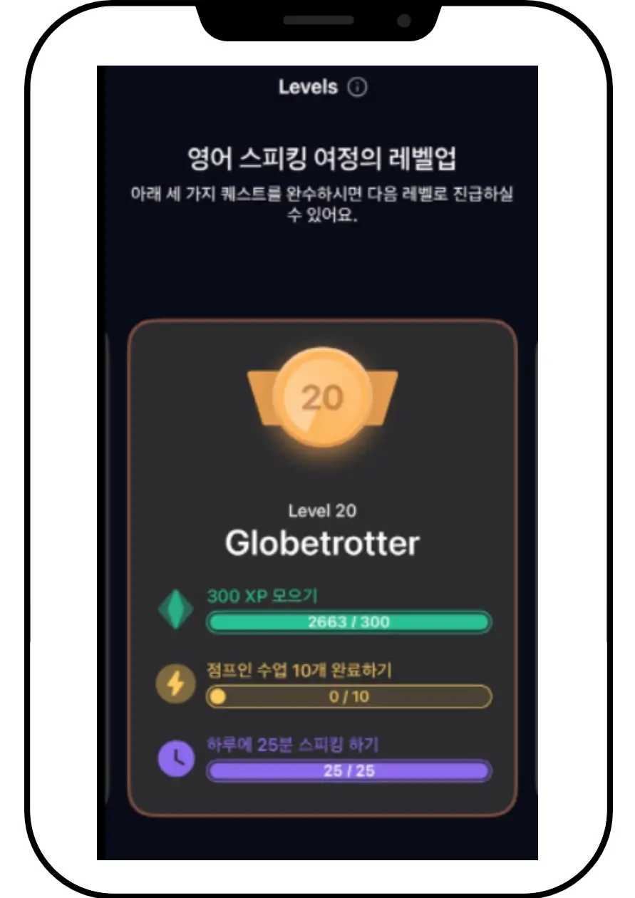 모든 학습자의 수준이 다르다는 걸 스픽은 알고 있기 때문에 사용자의 현재 영어 실력, 학습 목표, 관심사, 선호하는 학습 스타일을 바탕으로 맞춤형 커리큘럼을 생성해 줍니다!.