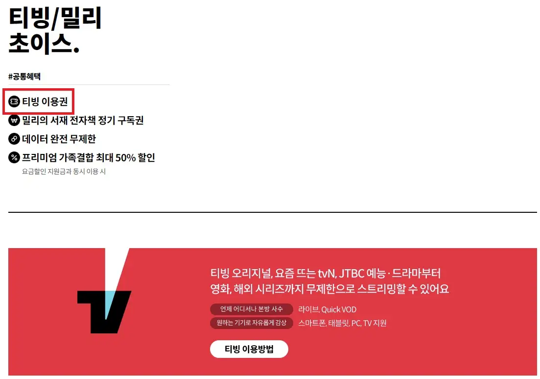 ✔️ KT 티빙/밀리 초이스