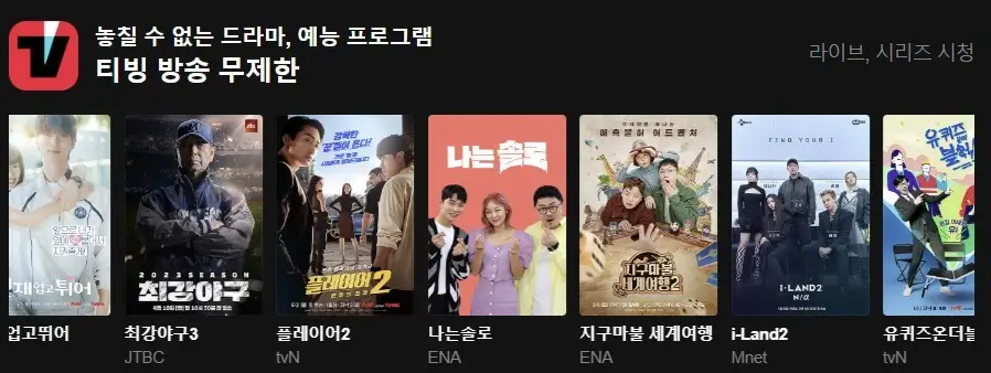 ✔️ 티빙(Tving): "방송 무제한" 서비스 이용권 제공