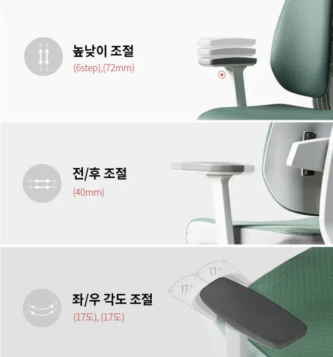 출처: 듀오백몰 의자를 사용할 때 다양한 조절기능이 필요한데요. 듀오백을 사용하기 전에 사용했던 의자의 경우 고정되어 있어서 많이 불편했던 기억이 있는데요. 듀오백의 경우 높이 조절, 팔걸이 조절, 등받이 각도 조절 등 다양한 조절이 가능하기 때문에 내 몸에 맞는 최적의 자세를 찾을 수 있어 더 편하게 사용할 수 있습니다.