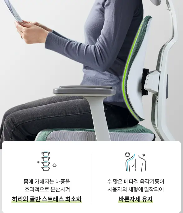 출처: 듀오백몰 듀오백 의자가 어떻게 생겼는지 다들 아시죠?? 물론 모든 라인에 2개의 등받이가 있는 건 아니지만 허리 지지대 디자인이 듀오백의 시그니처라고 할 수 있는데요. 사용자의 체형에 맞게 조절이 가능한 2개의 등받이가 자세 변화에 따라 따라다니면서 척추와 등 근육을 견고하게 잡아줘서 허리에 가는 부담을 줄여줍니다!