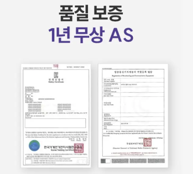 출처: 풀리오 넥풀러는 KC 인증을 받은 제품으로 전자파 적합성 시험을 통과한 제품인데요. 제품에 대한 자신감과 고객에 대한 서비스의 마음으로 1년간 무상 AS가 가능하다고 합니다.