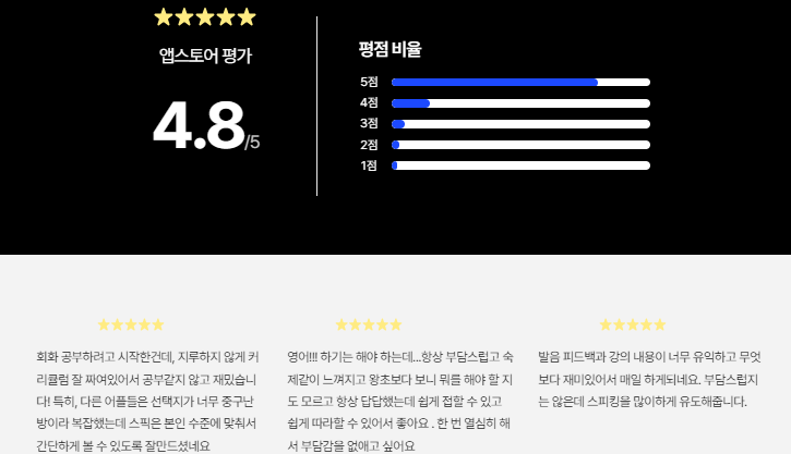 출처: 스픽 또한 자체적으로 개발한 음성인식 기술이 저는 정말 만족스러웠는데요. 샤워 중이거나 외부가 시끄러워도 정말 빠르고 정확하게 인식해서 스피킹에 온전히 집중할 수 있었습니다.