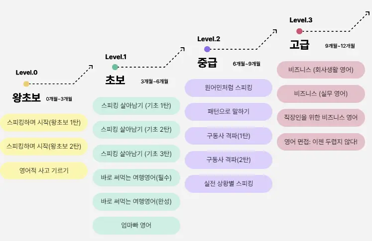 출처: 스픽 내면화 커리큘럼은 왕초보자부터 비즈니스 영어까지 다양한 레벨의 강의가 준비되어 있는데요. 그 덕분에 개인의 수준에 맞춰 스피킹 연습을 할 수 있다는 장점이 있습니다.