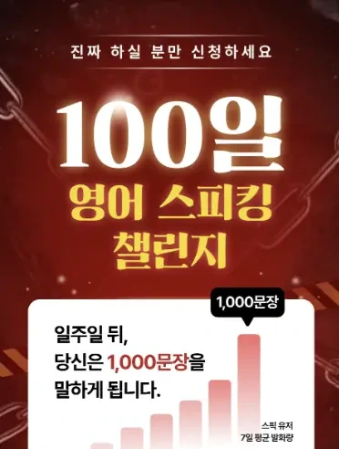 영어 공부를 처음 시작할 때는 항상 의지가 강하지만 시간이 지나면 흔들리기 마련인데요. 100일을 챌린지를 달성하겠다는 목표를 설정하고 영어 공부를 시작하면 하루하루 성취감을 느끼면서 좀 더 즐겁게 영어를 배울 수 있어서 좋은 것 같아요!