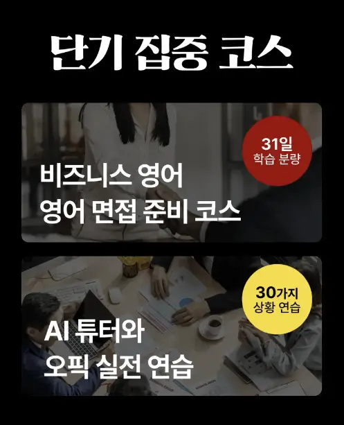 출처: 스픽 스픽 단기 집중 코스는 영어 면접이나 오픽 시험을 준비하는 분들을 위한 코스인데요. 이 과정을 통해 비즈니스 영어 면접 준비와 AI 튜터와 함께 실전 연습을 할 수 있습니다.