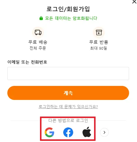 알리익스프레스와는 다르게 네이버 또는 카카오로는 로그인이나 회원가입이 불가능한 점은 조금 아쉬웠네요.