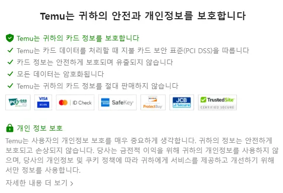 출처: 테무 저도 걱정돼서 알아본 결과 사용자의 개인정보와 보안을 위해서 신경을 쓰고 있더라고요. 위처럼 홈페이지 배너에 보안 알림을 설정해 두고 이용자들에게 보안을 강조하고 있는 모습이 인상적이었습니다.