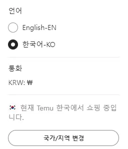 아래에서 보이는 것과 같이 테무의 경우 영어와 한글로 완벽하게 번역이 되어있어서 국내 사이트에서 쇼핑하듯이 하셔도 괜찮습니다! 가격도 원화로 표시되고 그 가격 그대로 결제가 되기 때문에 걱정하지 않으셔도 돼요.