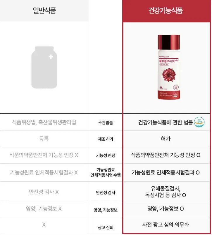 빨간통 다이어트 콜레올로지 컷 PRO는 천연 성분을 비롯해 다양한 기능성 원료로 구성되어 있는 식약처로부터 기능성을 인정받은 건강기능식품인데요. 일반식품에 비해 건강기능식품으로 인정받기 위해서는 까다로운 절차를 통과해야 되는데요.