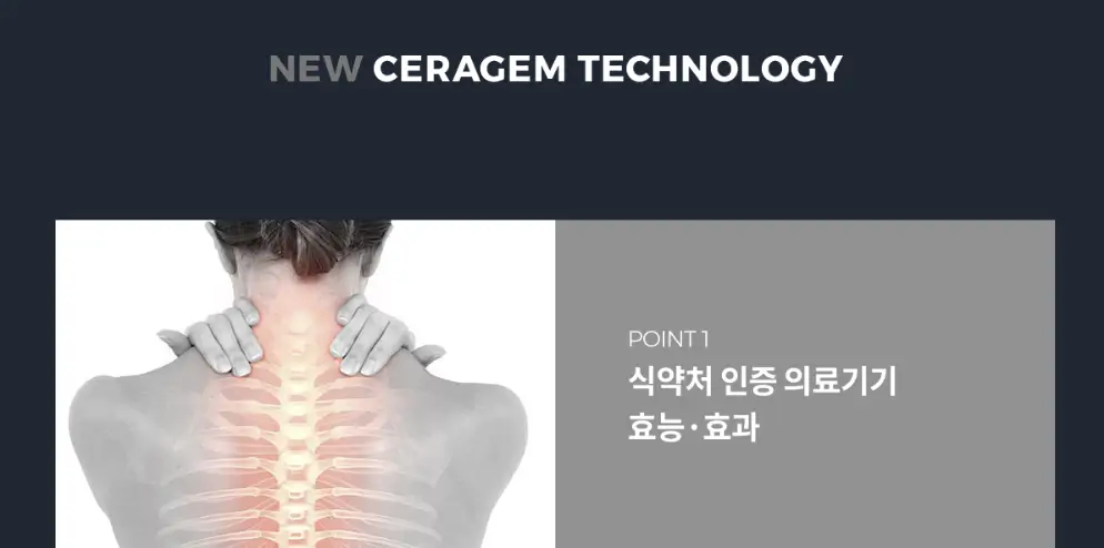 또한 세라젬의 특허 기술인 9단계 수직 견인 마사지 기능이 추가되었는데요. 이 특허 기술은 특히 추간판 탈출증과 퇴행성 협착증 치료 목적으로 척추부위를 승하강하면서 압박해서 척추를 견인하는 기술입니다.