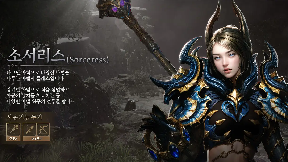 MMORPG게임에 마법사 클래스가 없으면 안 되겠죠? 소서리스는 다양한 원소 마법을 사용하는 클래스로 적을 공격하거나 아군을 지원하는 데 중요한 역할을 합니다!
