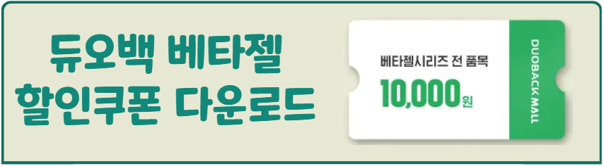 베타젤 소재가 소재가 사용된 베타젤 시리즈 전 품목에 사용할 수 있는 1만 원 쿠폰을 제공하는 프로모션도 진행 중인데요. 200종 이상의 유해물질 불검출 테스트도 통과한 베타젤 시리즈 할인쿠폰 정보가 궁금하신 분은 다음을 참고해 주세요!