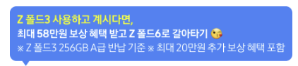 갤럭시 바꿔보상 제도를 이용하면 중고 기기 값뿐만 아니라 추가적인 보상까지 받아서 최대 58만 원까지 할인이 가능하다고 하는데요. 이 혜택 또한 기간 한정으로 진행되는 프로모션이니 지금 바로 확인해 보시는 걸 추천드립니다!