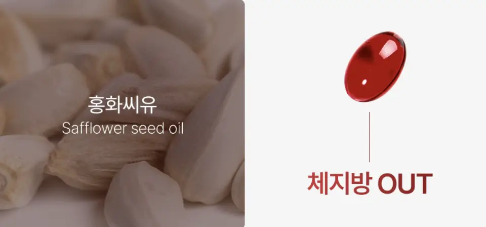 푸응 팻버닝에는 식물성 원료인 홍화씨유로부터 추출한 불포화 지방산을 정제 가공한 CLA(공액리놀레산)이 1,400mg나 함유되어 있는데요. 80% 이상의 순수 CLA가 함유되어 있는 순도 높은 제품입니다!