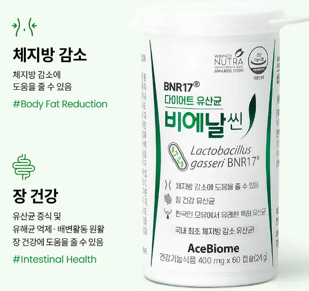 다이어트 유산균인 BNR 17의 경우 체지방 감소에 도움이 되는 유산균이기 때문에 체지방 관리가 필요하신 분은 아래 효능 부분들을 집중해서 읽어주세요!