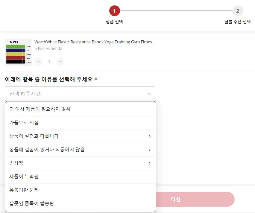 제 경험상 반드시 사진 또는 동영상을 첨부해야 되는 것은 아니었습니다. 애초에 상품 수령 후 첫 번째 반품은 이유를 불문하고 가능하기 때문에 반품 사유만 선택하고 다음으로 진행해 주세요.
