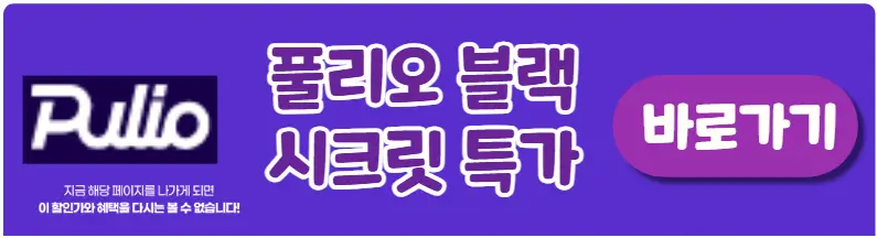 풀리오 블랙은 오직 시크릿 경로를 통해 들어가야 할인된 금액으로 구매할 수 있기 때문입니다. 아래는 할인 경로를 통해 들어간 화면인데요.