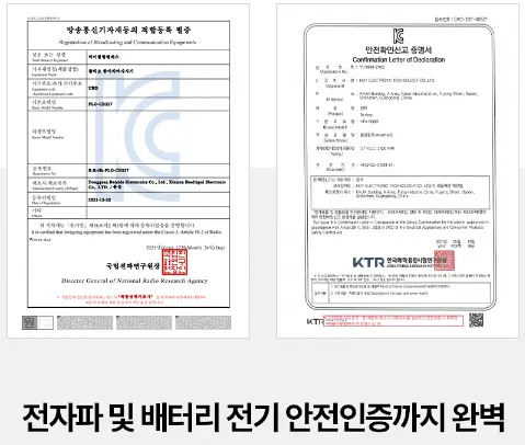 풀리오는 전자파 및 배터리 전기 안전인증까지 완벽하게 받은 제품이기 때문에 안심하고 사용하셔도 됩니다.